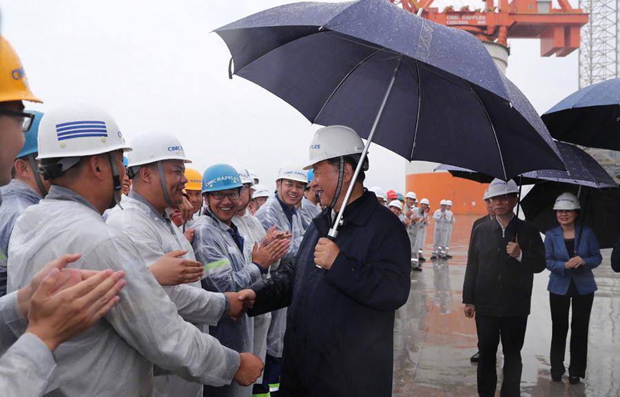 習(xí)近平冒雨考察海洋工程設(shè)備制造基地
